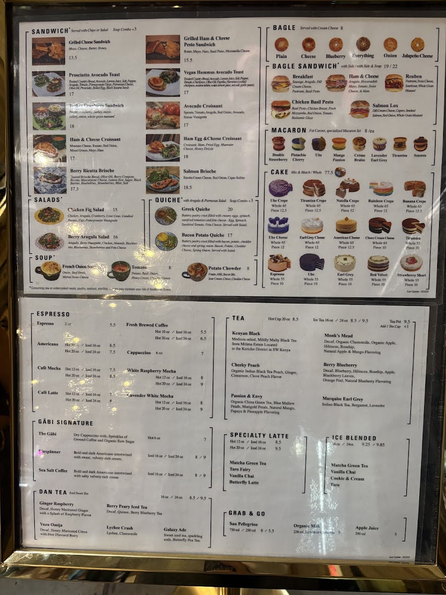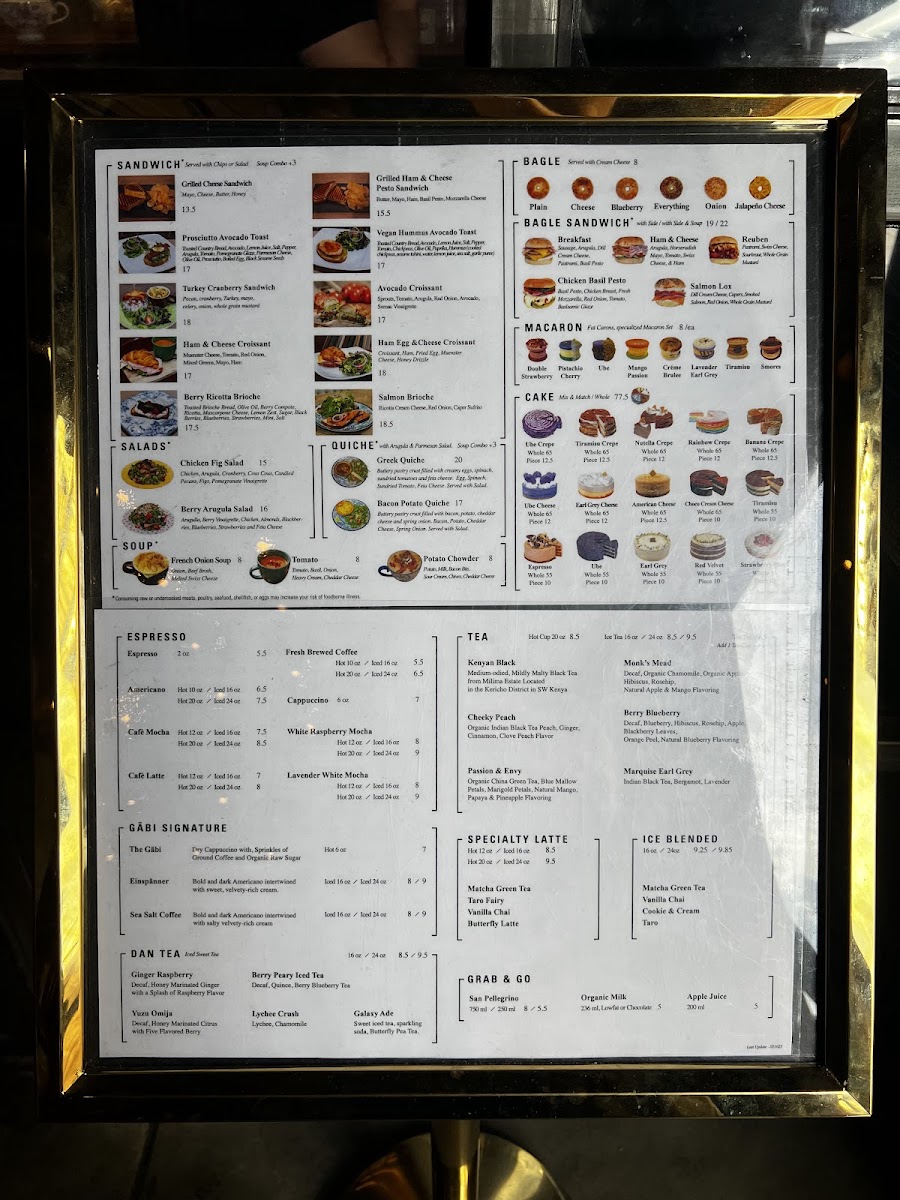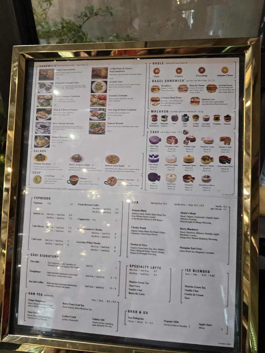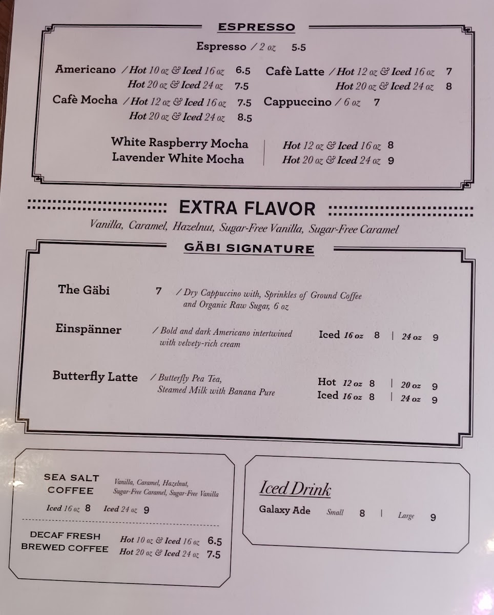 When it comes to their menu, Gäbi Coffee & Bakery excels with offerings that are as delicious as they are beautiful. Sip on a refreshing Large Galaxy Ade for $10.80, or dive into the realm of indulgence with one of their tasty Ice Blended drinks like the Cookie & Cream Ice Blended or the Vanilla Chai Ice Blended, both priced at $10.50. If you're craving something to munch on, their selection of bagels is impeccable. Enjoy a Cheese Bagel topped with melted, golden-brown cheese for just $9.60 or experience the flavorful notes of an Onion Bagel adorned with crispy onion flakes, also priced the same.